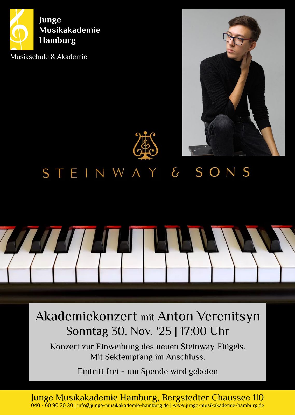 Akademiekonzert zur Einweihung des neuen Steinway-Flügels. Mit Sektempfang im Anschluss. Eintritt frei - um Spende wird gebeten