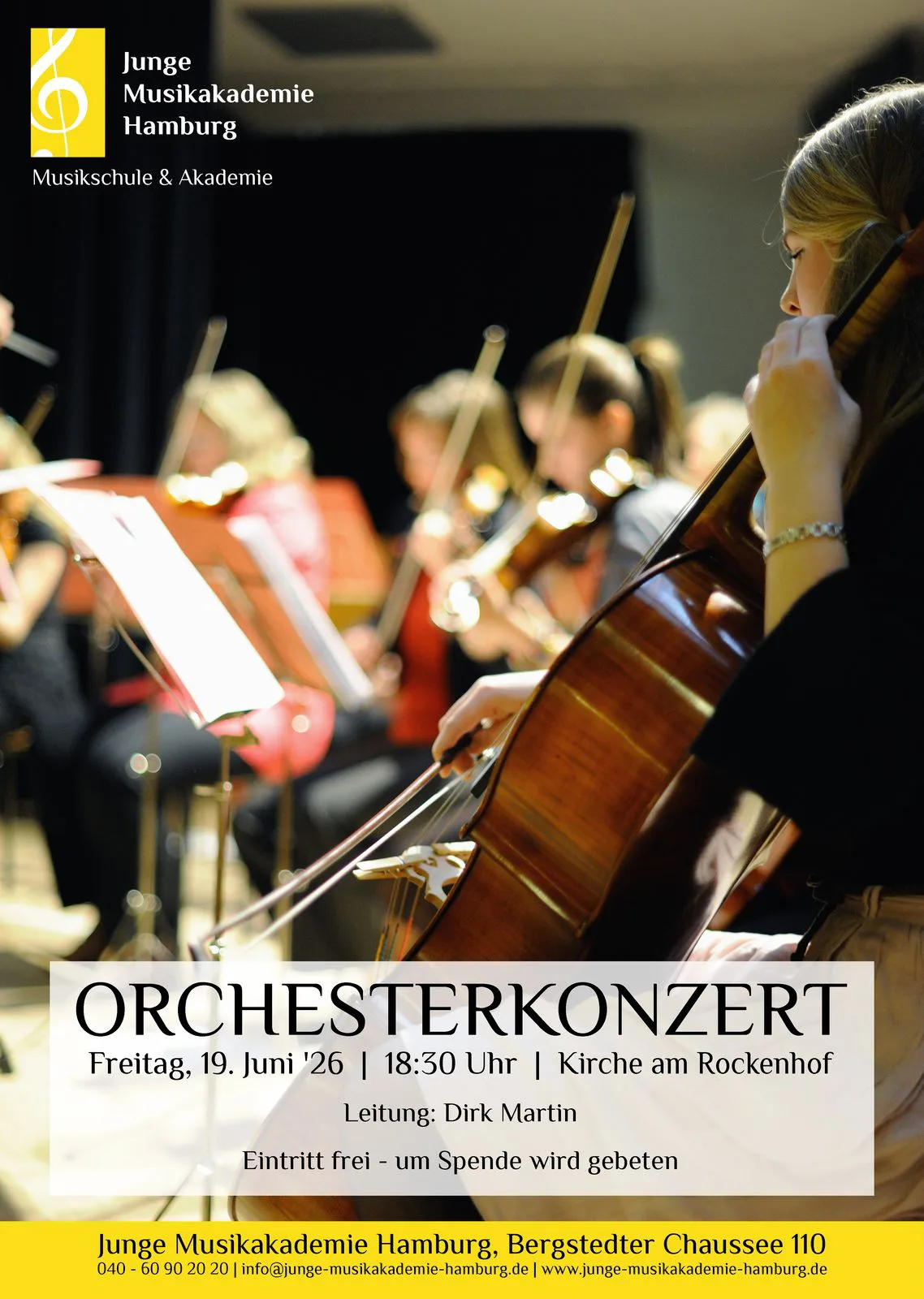 Kirche am Rockenhof, Hamburg-Volksdorf. Jahreskonzert unseres Symphonierchesters in der stimmungsvollen Kirche am Rockenhof. Leitung: Dirk Martin Eintritt frei, um eine Spende wird gebeten